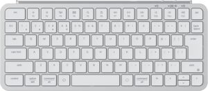 ノートPCのように薄くて軽いワイヤレスキーボードで、持ち運びやすく、静かな打鍵音が特徴です。仕事用・私用など複数のデバイスを切り替えながら使う人にとても向いています。