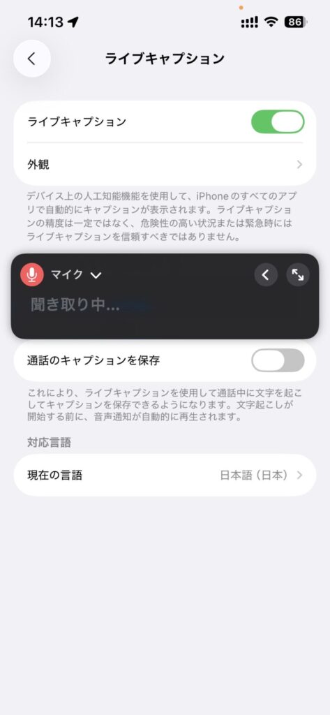 - 日本語対応:iOS26から日本語の文字起こしに正式対応