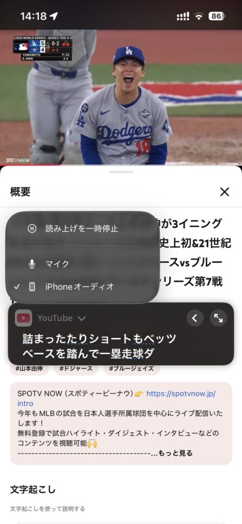 - 「iPhoneの音声」:端末で再生中の音声を文字起こし