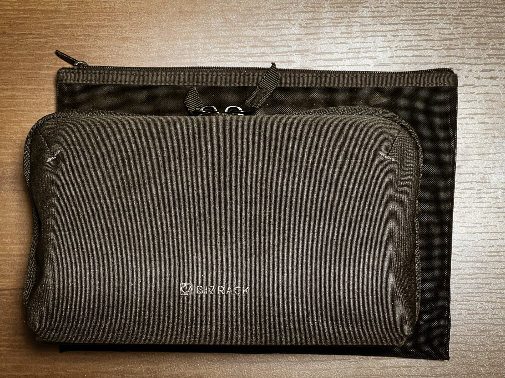 ナイロンメッシュケースはB5サイズですが、BIZRACKは一回り小さいです。